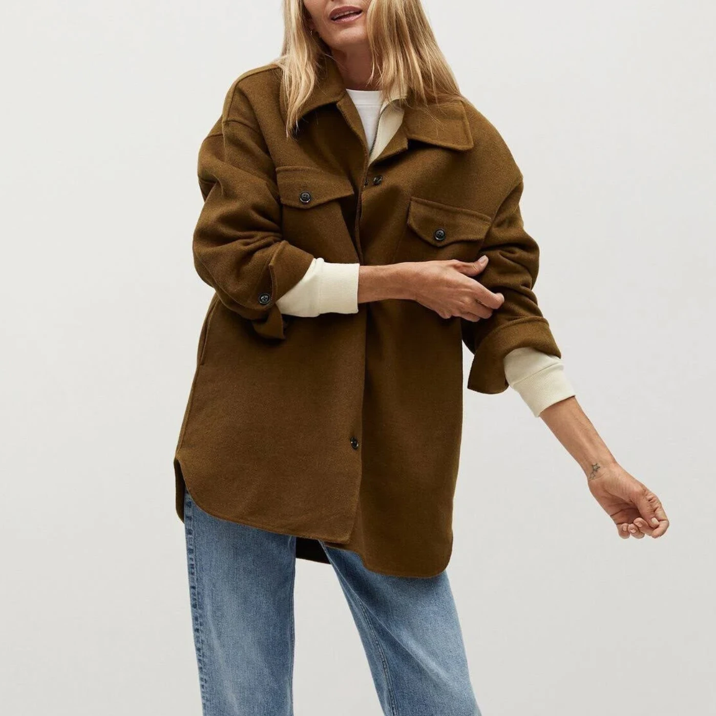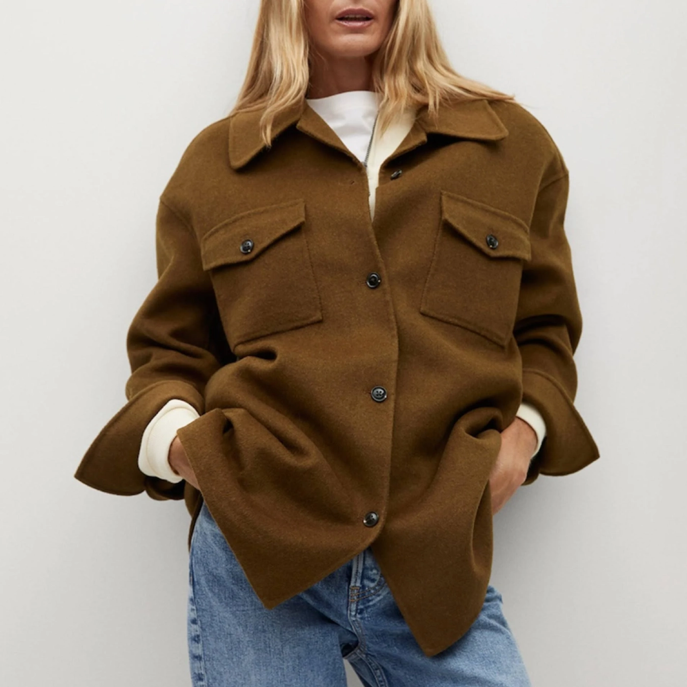 - Front: Button Closure